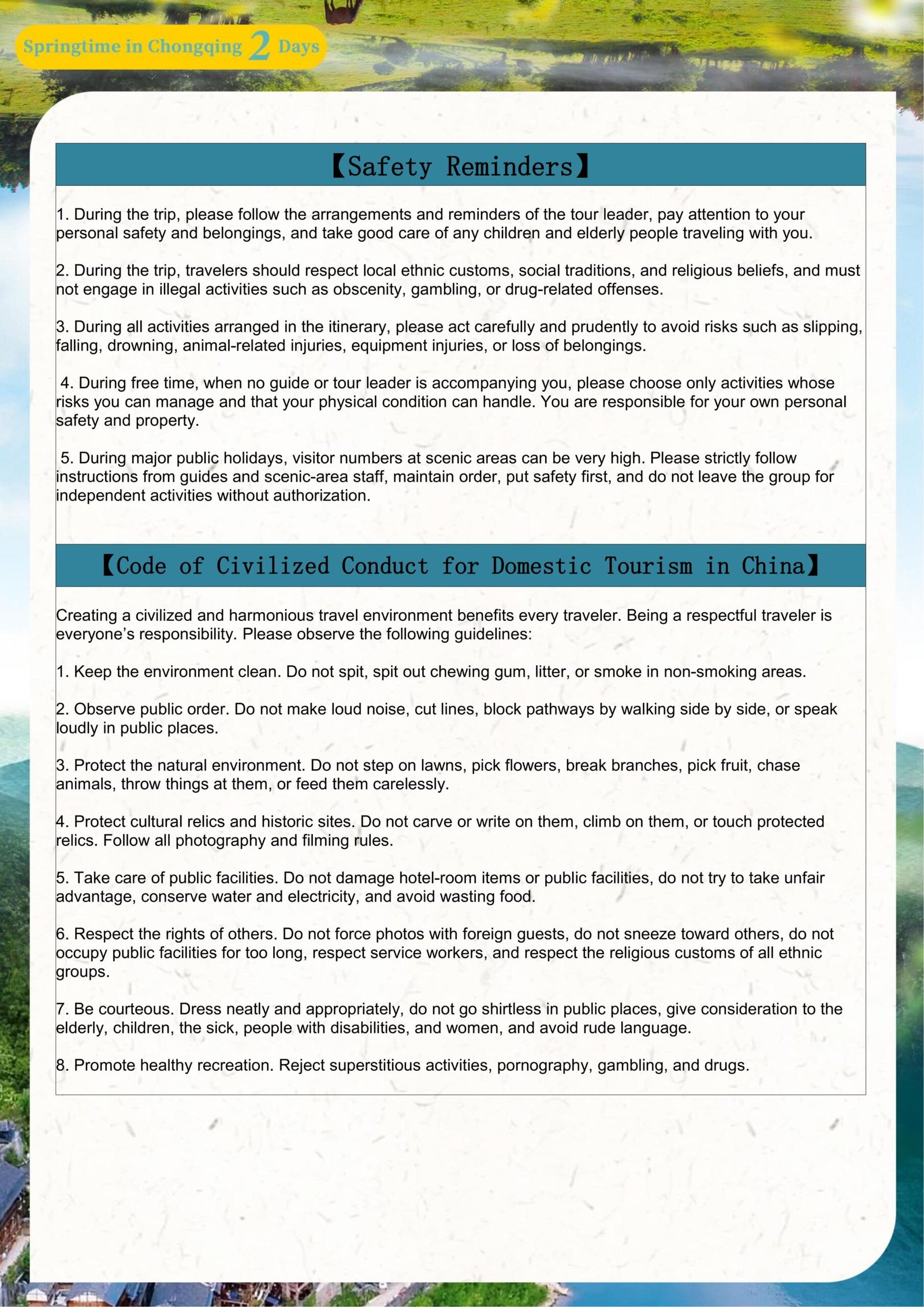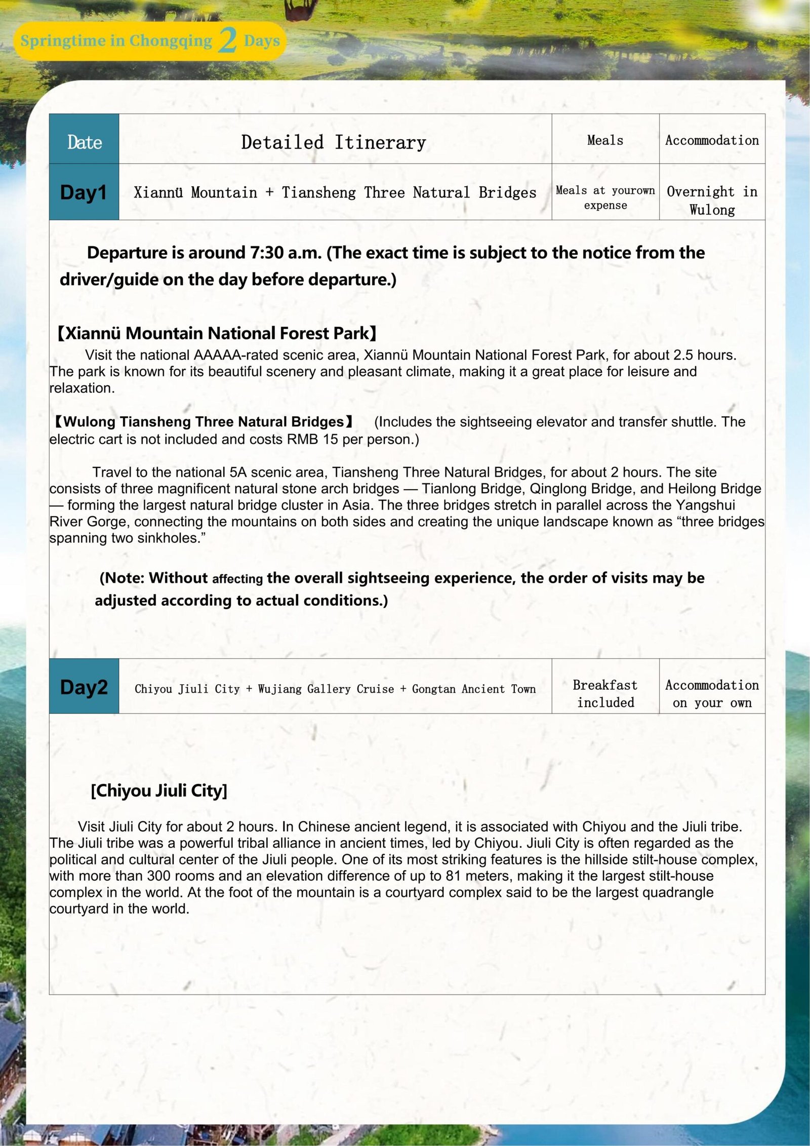 Group Tours with Pre-Planned Itineraries: 2 – Day Tour