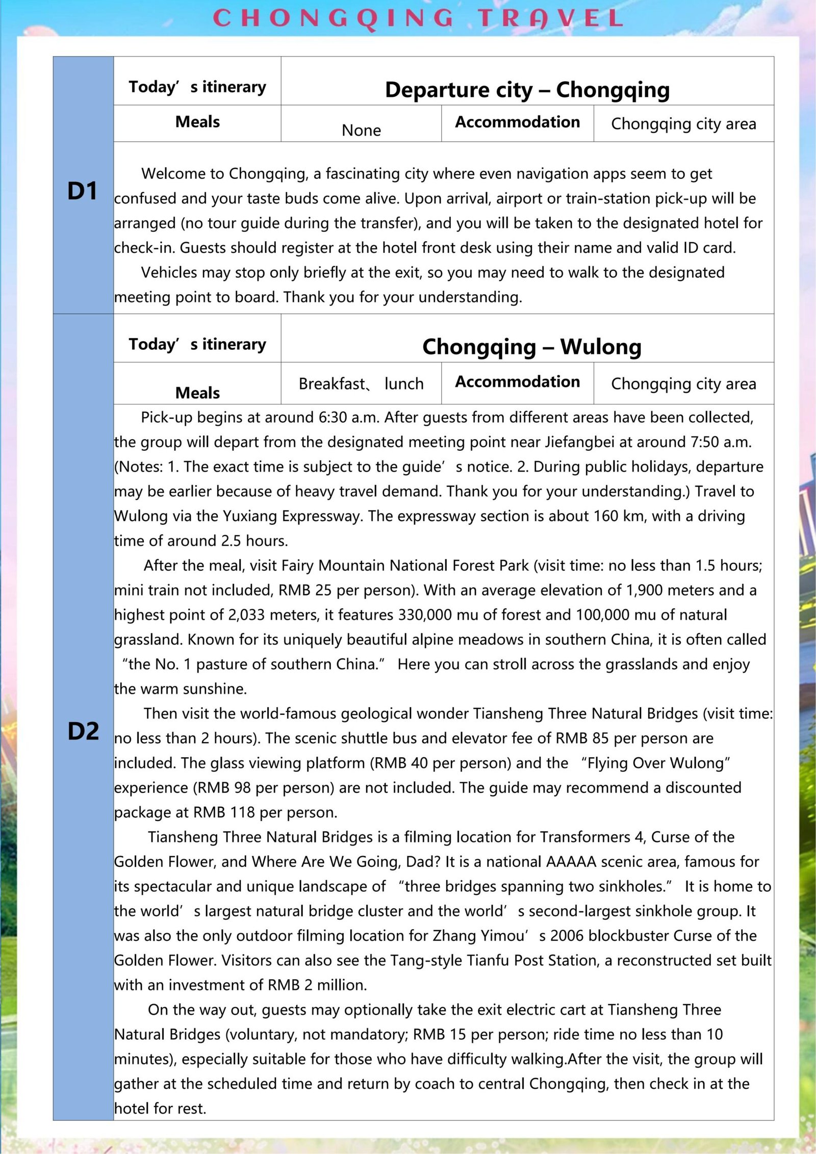 Group Tours with Pre-Planned Itineraries: 5 – Day Tour (4 Nights)